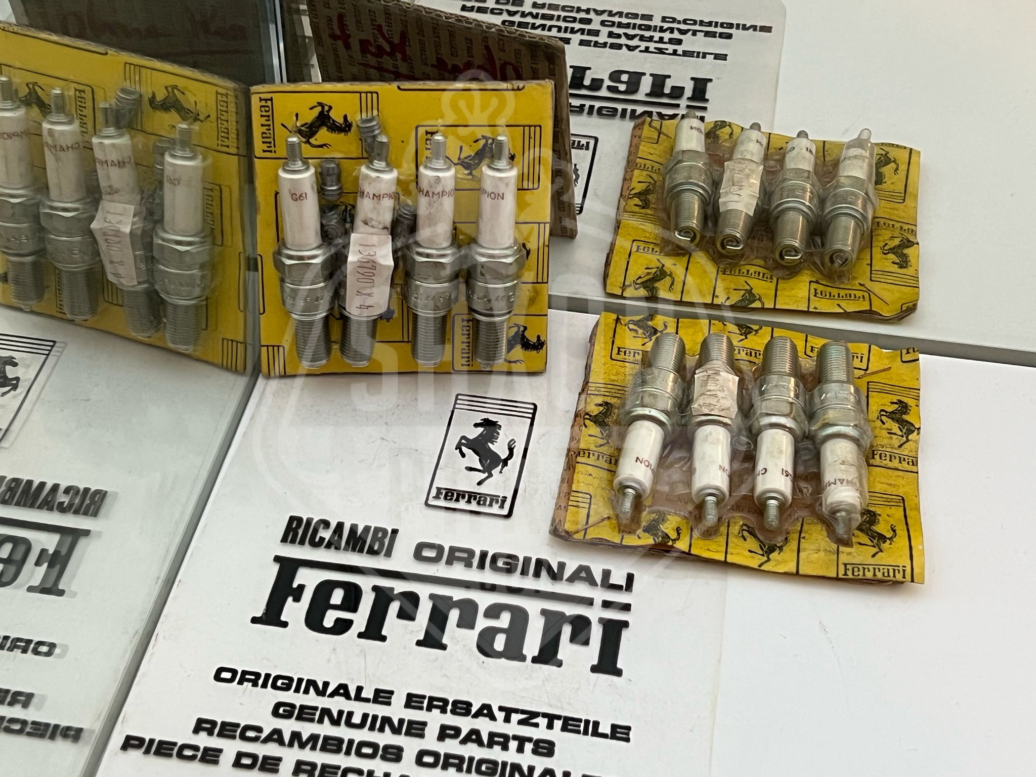 New old stock set of 8 Champion G61 spark plugs in the original packaging. These are for the non catalyst Ferrari F40.