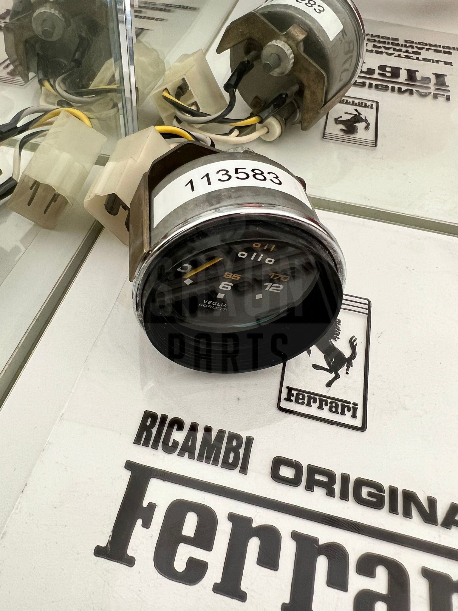 This is a new old stock oil pressure Veglia Borletti gauge for the 308 GT4 Dino by Bertone. Part number 40375008 / 113583