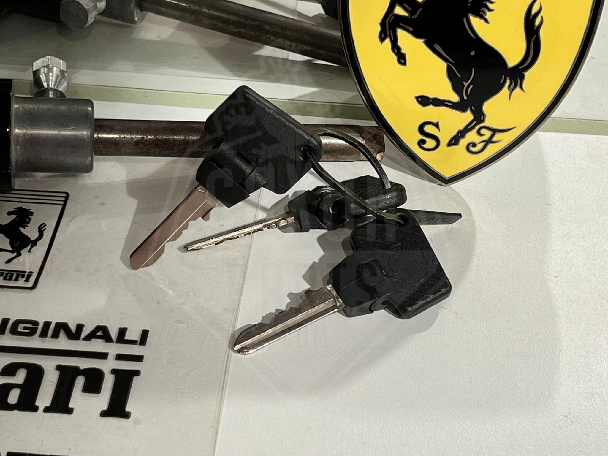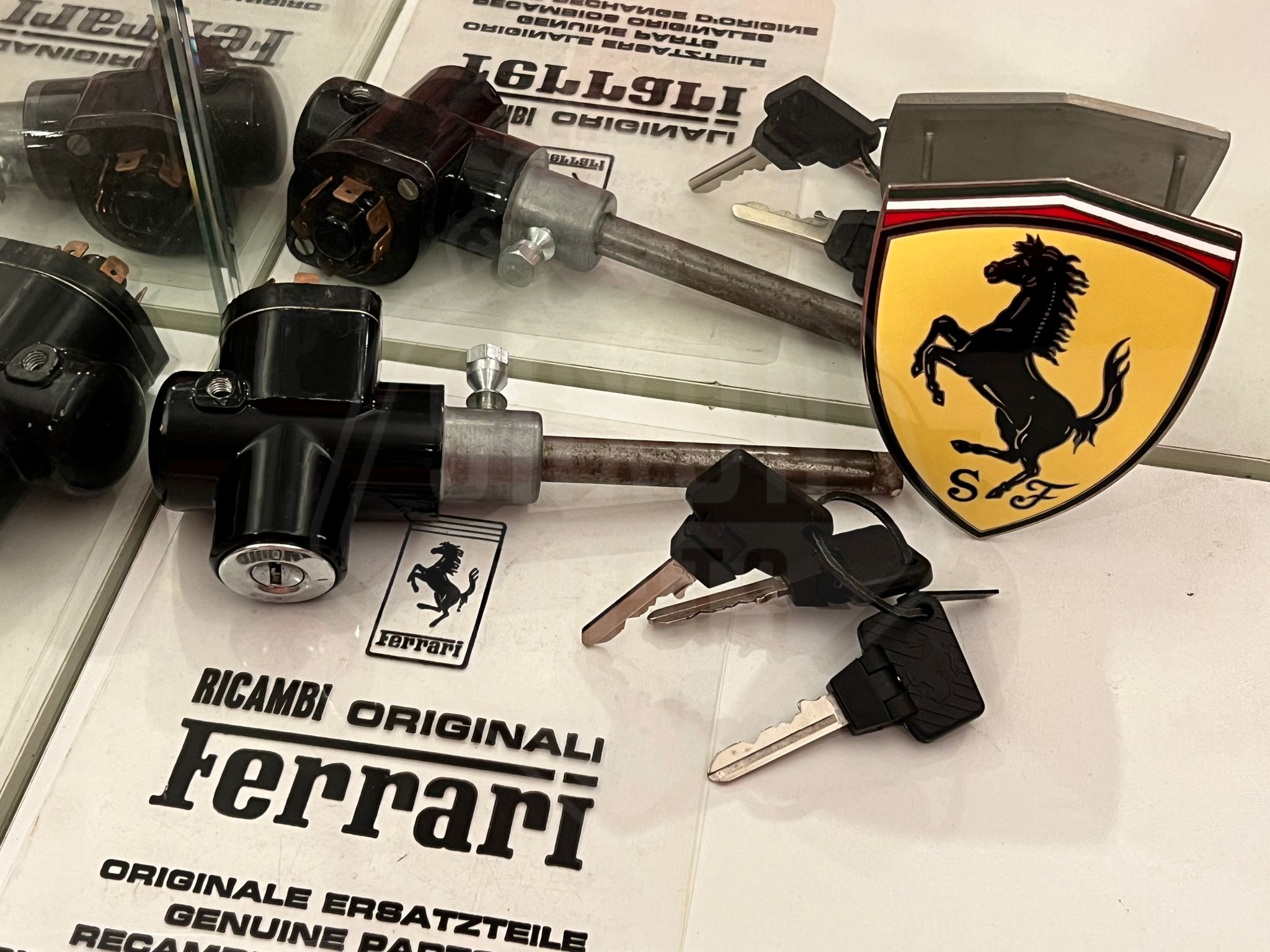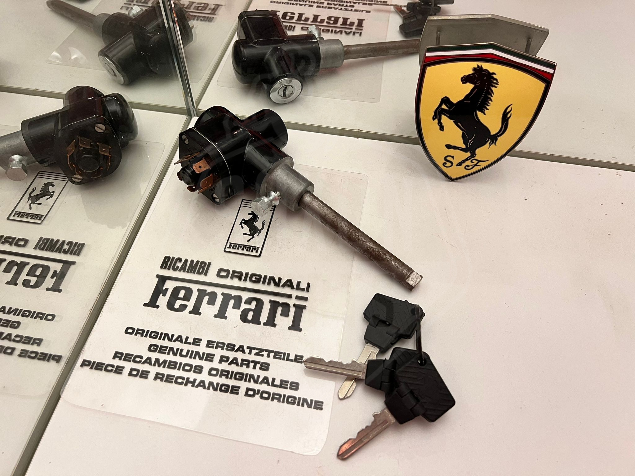 This is a new old stock anti-theft-lock assembly/ ignition switch part number 127297 for the Ferrari F40. It comes with 3 foldable keys 95401153 and screw 168045.