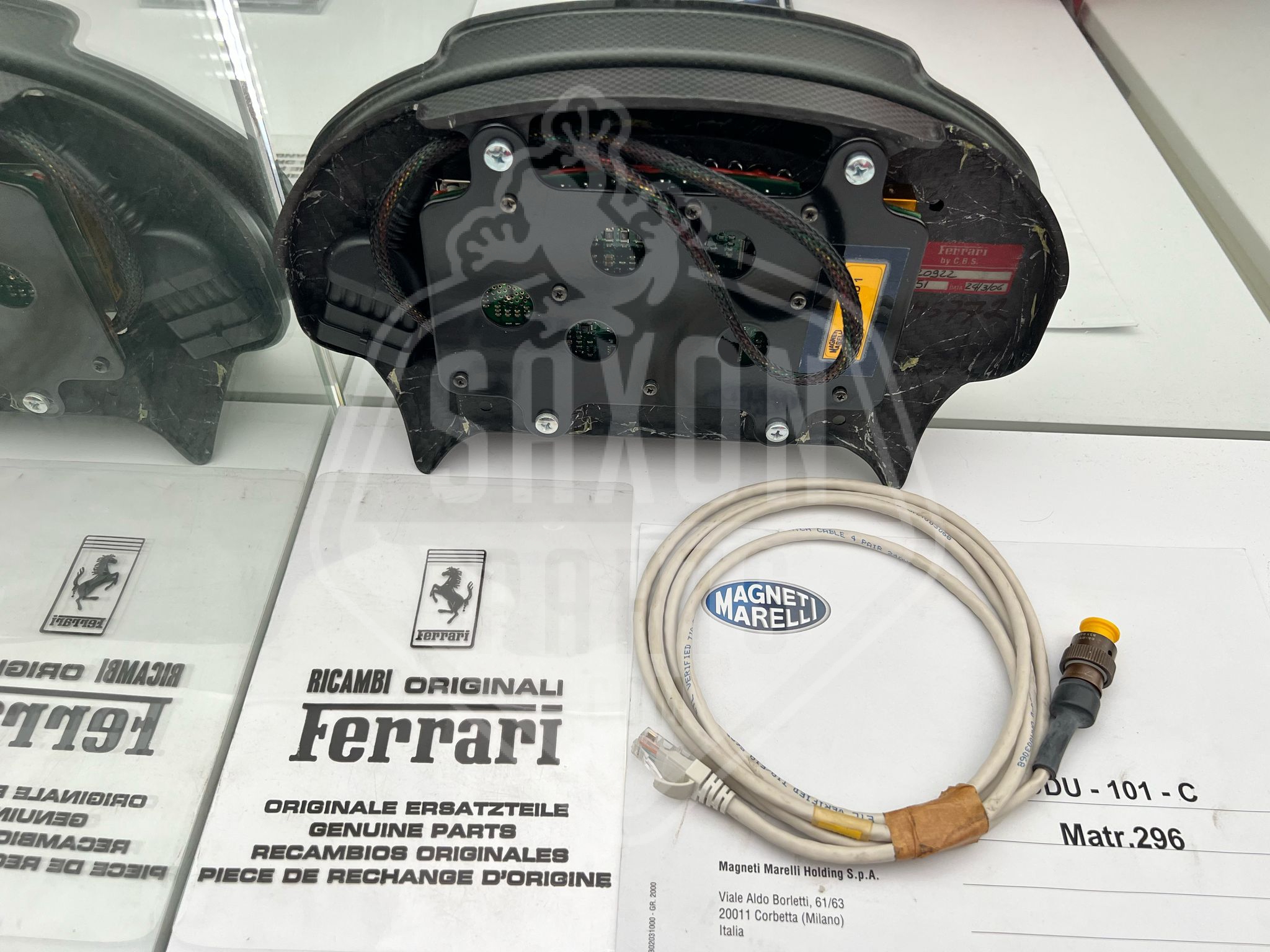 New old stock CBS carbon fiber Magneti Marelli dashboard panel with display for the Ferrari 430 GT Michelotto.